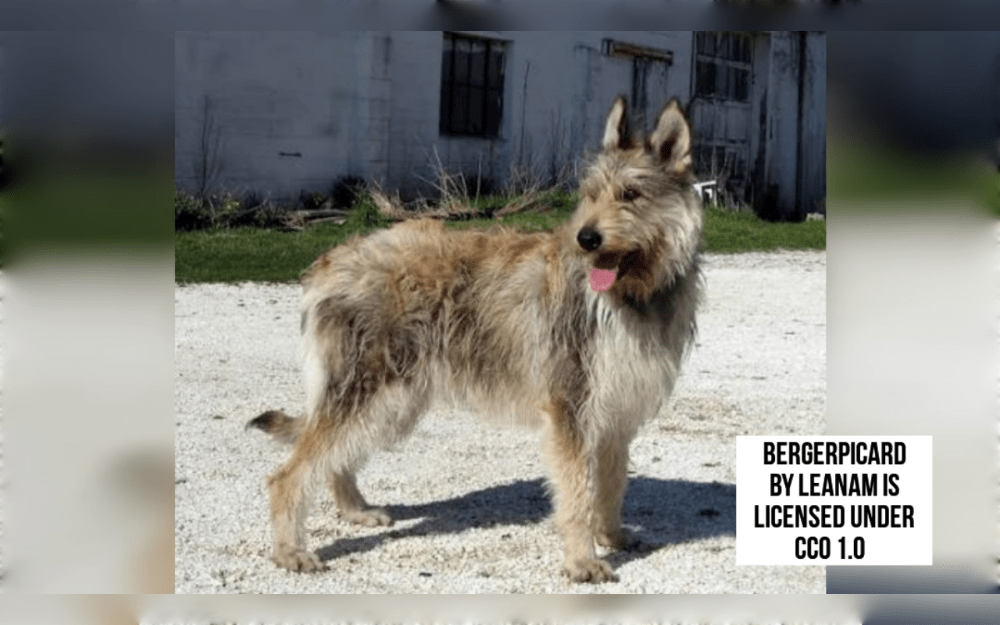 The medium-sized, strong, and somewhat longer-than-tall Berger Picard has a distinctive rough coat, upright ears.Their medium-length, wiry double coat is often brindle or fawn, with or without white markings.