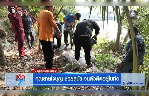 Credit: Channel 7 News In Nakhon Luang District, Phra Nakhon Si Ayutthaya Province, Thailand, a dog became stuck in a concrete pipe at approximately 3