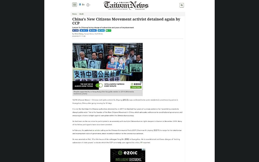Xu, who has already served jail time for his spearheading of the New Citizens’ Movement anti-corruption campaign, penned an open letter to Xi while in hiding following a gathering of pro-democracy activists and lawyers in December 2019, calling on him to step down.