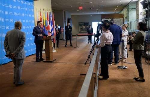 Danny Danon, Permanent Representative of Israel to the United Nations, briefs reporters on the situation in Lebanon.