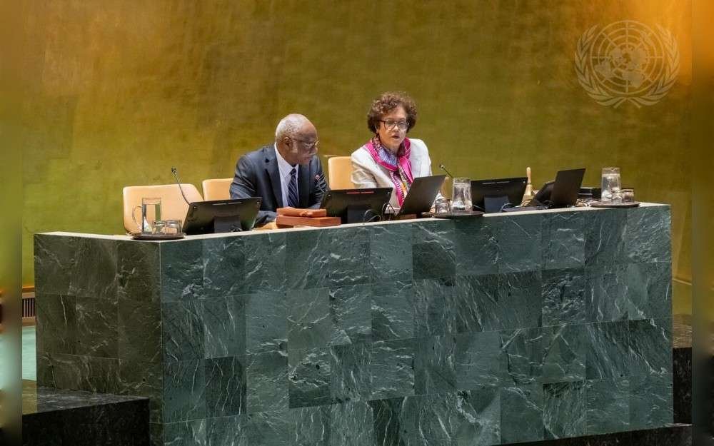 United Nations General Assembly holds special solemn meeting in commemoration of all victims of the Second World War on the Eightieth anniversary of the end of the Second World War.Philemon Yang (left), President of the seventy-ninth session of the United Nations General Assembly, chairs the 68th plenary meeting on May 7,2025-UN Photo/Manuel Elias
