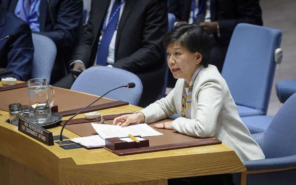 Izumi Nakamitsu, High Representative for Disarmament Affairs, briefs the Security Council meeting on non-proliferation and supporting the Non-proliferation Treaty ahead of the 2020 Review Conference on 26 February 2020~ UN Photo by Loey Felipe