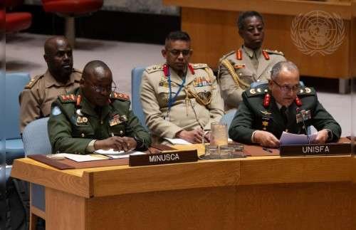 Major General Ganesh Kumar Shrestha, Acting Head of Misson and Force Commander, United Nations Interim Security Force for Abyei (UNISFA), briefs the United Nations Security Council meeting on United Nations peacekeeping operations.