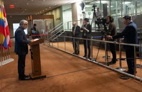Amir Saeid Iravani, Permanent Representative of the Islamic Republic of Iran to the United Nations, briefs reporters on the situation in the Middle East. ...