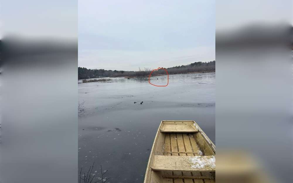The post reads,”After speaking with the caller and Evelyn Alexander Frankie put on his wet suit grabbed the gear and immediately headed out. While in route he spoke to nearby neighbors Sam and Garrett that were willing to help get a boat and more man power that was needed .Frankie was halfway to the location when we heard the deer had fallen through the ice and was treading water to keep her head above water. This is where the fun begins. When I arrived Ryan from Evelyn was just getting there as well We had to act fast with assistance from the police and good samaritans we put the boat over the fence tied a 100 foot rope to it and put it in the water .. well the ice . The boat would not go anywhere due to the 2 inch ice that had frozen over the top of the water it was not thick enough to walk on but thick enough to not let the boat go through it . So… Frankie stood on the front of the boat and smashed the ice while Ryan manned the boat. This was no easy task as the boat was wobbly and if it tipped we would be in freezing waters over our heads. Carefully but aggressively Frankie broke through nearly 60 feet of ice to get the struggling doe. We were doing good and getting close , Frankie felt he needed a moment to catch his breath when we saw the doe start to give up . It was do or die. Both Frankie and Ryan put it into high adrenaline mode and pushed their hardest to get to her. We were able to safely get her on the boat and the team at the shore started to pull us back ! We are absolutely confident that if we were 2 minutes later she would not have survived. When we go to shore the ground team took her over the fence and got her into a warm car with blankets and headed straight to the hospital at Evelyn Alexander. We did it we gave it our all and saved this little girl from certain death….”