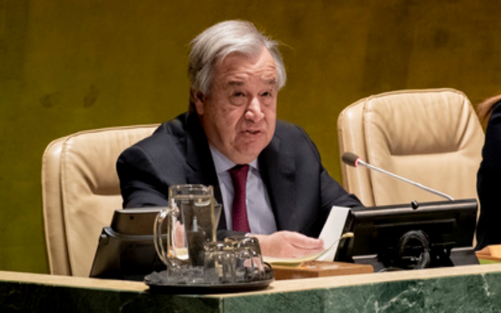 United Nations Secretary-General António Guterres makes remarks at the commemorative meeting of the General Assembly to mark the International Day of Remembrance of the Victims of Slavery and the Transatlantic Slave Trade on 25 March- UN Photo by Evan Schneider