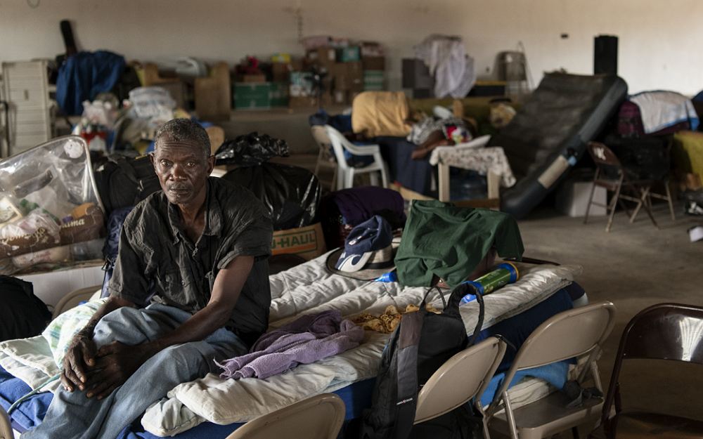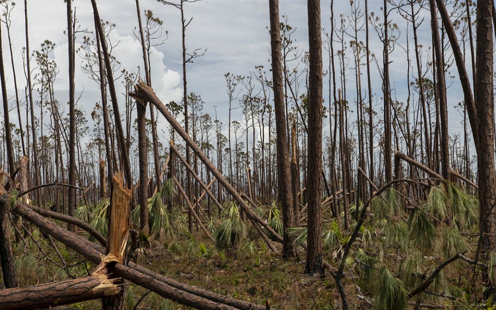 Hurricane Dorian, a category five hurricane, swept the Bahama islands of Abaco and Grand Bahama on 1 September 2019. At least 43 people died following the passage of Dorian that stalled over the Bahamas for nearly two days with winds of 200 mph, becoming one of the worst disasters in the nation’s history. Local residents of Marsh Harbor on Abaco Island cover a roof affected by the hurricane with tarp on 12 September,2019Victor Macintosh, a local resident of Coopers Town on Abaco Island, receives tarp to cover his roof from International Organization for Migration (IOM).Views of the mass destruction in Marsh Harbor on Abaco Island and the environmental impact the storm had on the pine forest between Coopers Town and Treasure Cay.A Haitian Church in Marsh Harbor on Abaco Island serves as shelter for 47 people. It helf up to 320 during the immediate aftermath of the hurricane.
