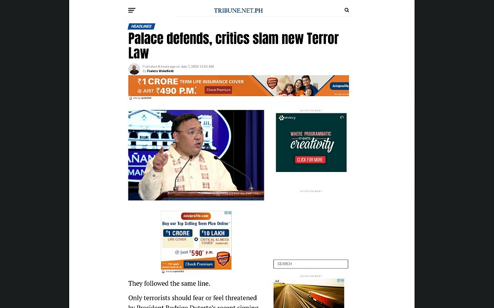 “It is a much-needed measure to clothe law enforcement agencies with the necessary power to contain and eradicate terrorists who don’t play by any rules and who hide behind our laws to pursue their evil deeds,” Lorenzana said in a statement on Sunday as he urged people to “read and understand” the law.