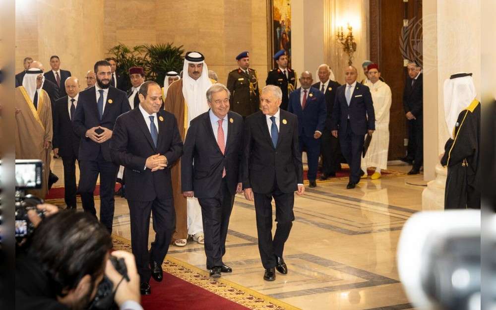 United Nations Secretary-General António Guterres (centre left in front) meets with Abdel Fattah El Sisi (at left in front), President of Arab Republic of Egypt on the sidelines of the Extraordinary Arab Summit on the situation in the Middle East and on Gaza reconstruction held in Cairo, Egypt on February 4,2025-UN Photo