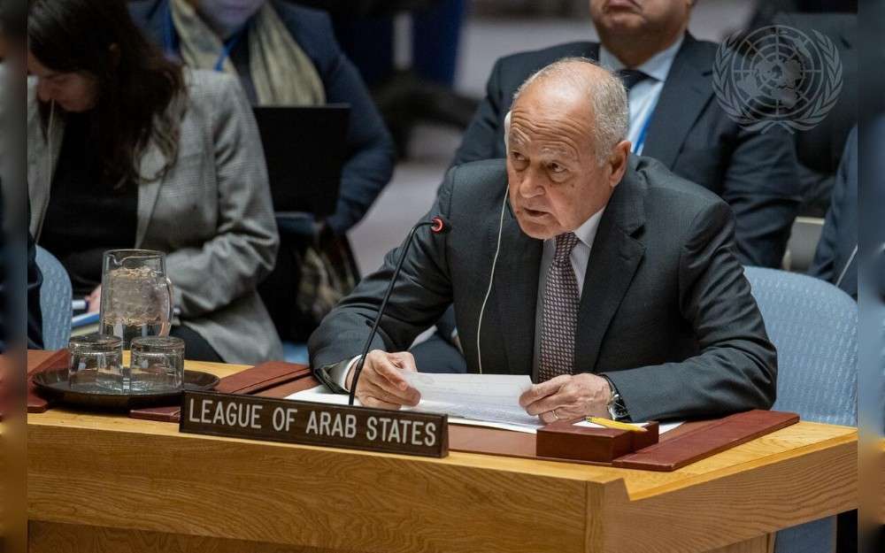 Ahmed Aboul Gheit, Secretary-General of the Arab League, briefs the United Nations Security Council meeting on cooperation between the United Nations and regional and subregional organizations in maintaining international peace and security, with a focus on Cooperation between the UN and League of Arab States on January 23,2025-UN Photo/Manuel Elias